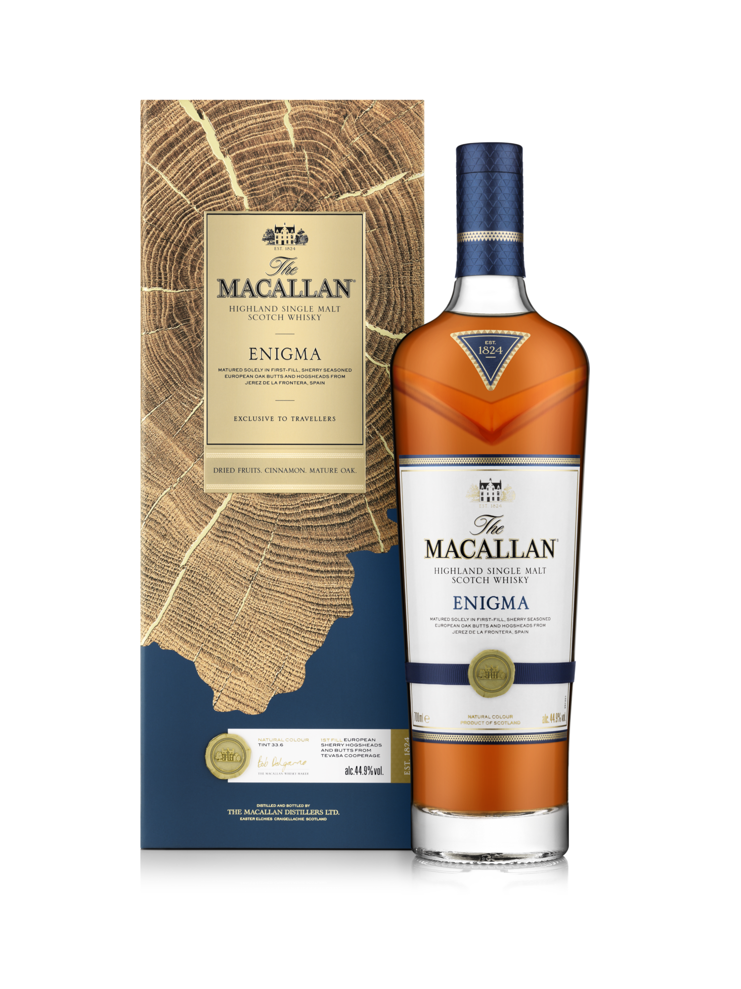 The Macallan Enigma is the pinnacle. A single malt shaped and influenced closer to The Macallan’s spiritual home than the three preceding whiskies. The inspiration for Enigma is quite simply Spain. This rich and intense single malt offers up mature oak with subtleties of cinnamon, vanilla and dried fruit.